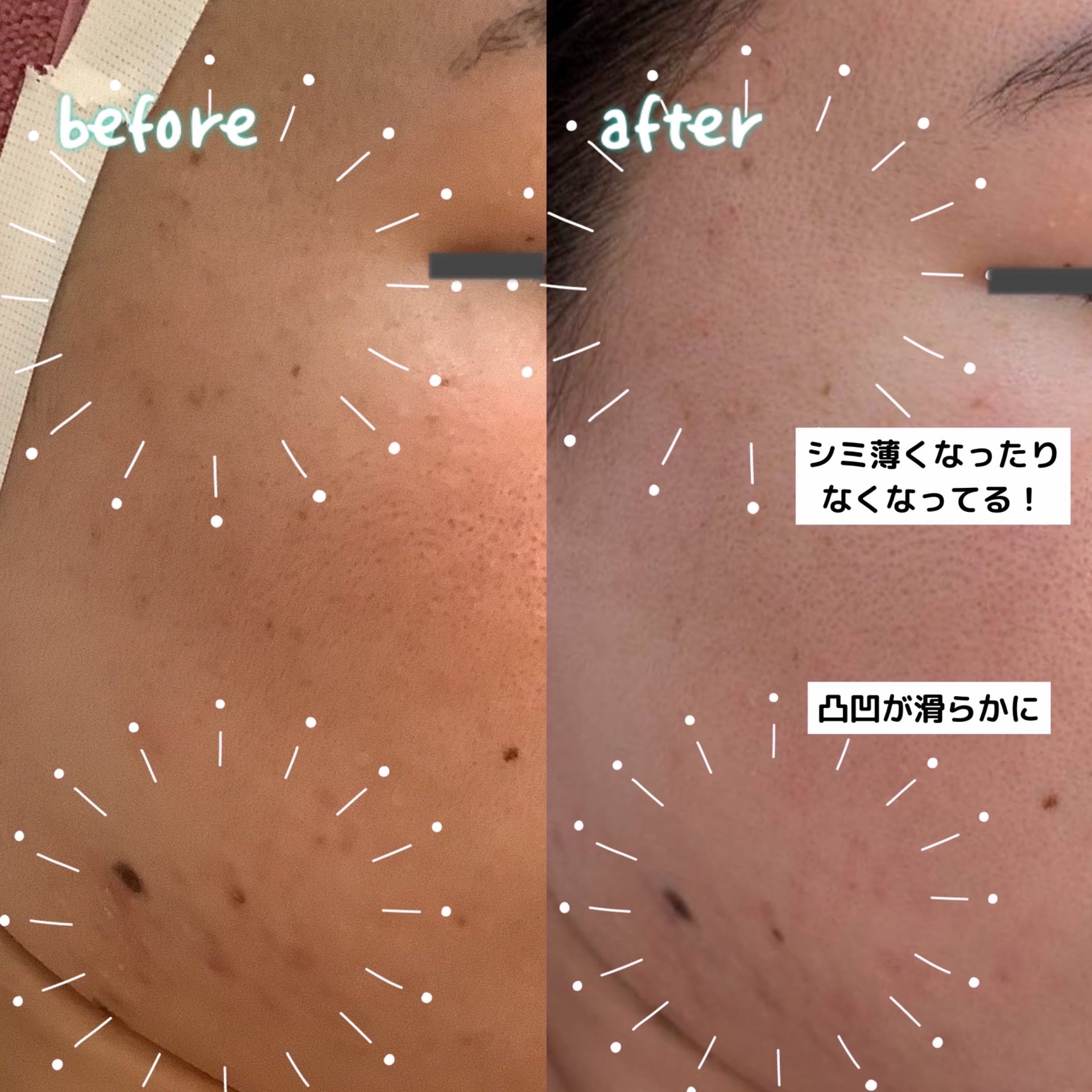 ララピールの最大の魅力は、施術後に感じる「お肌が生まれ変わった!」という実感。施術は刺激はなく、もちろん剥離もありません。終わると驚くほど肌が滑らかに。まさに、お肌ちゅるん!鏡を見るたびに「これが私のお肌!?」って思わず笑顔になっちゃいます。