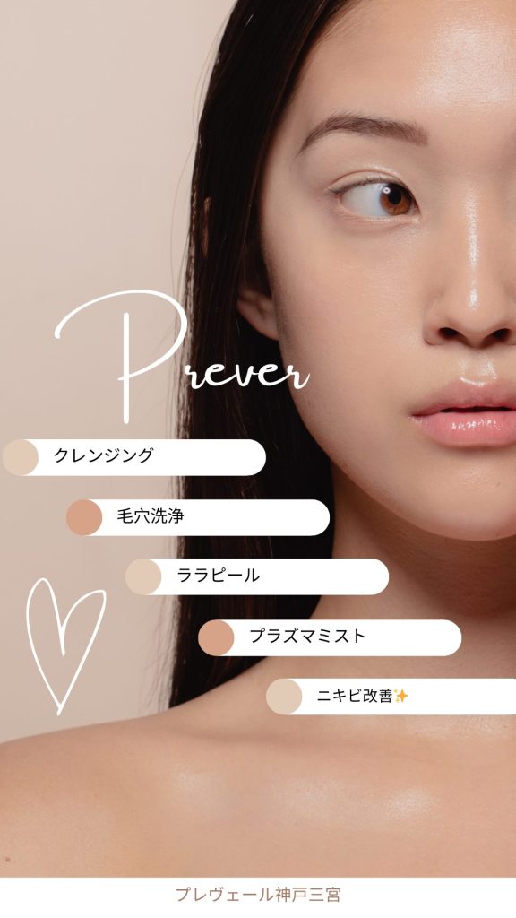プレヴェール神戸三宮では、ニキビケアに限らず、お一人おひとりの肌のお悩みに寄り添った施術を行っています。私自身も、かつては肌トラブルで悩み、いろいろなケアを試してきました。その経験を活かして、皆さんに自信を持っておすすめできるトリートメントをご提供しています。